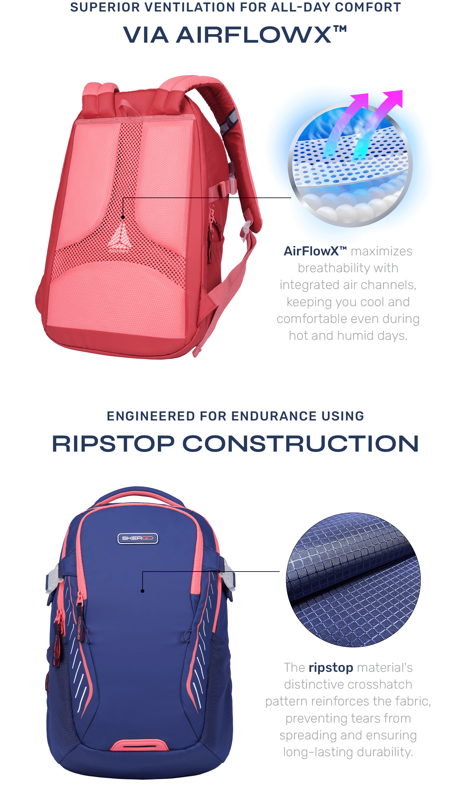 Comes with all the features of the Classic version plus AirFlowX™ technology for enhanced sweat absorption, along with tear-resistant Ripstop material, making it India's most durable school bag.